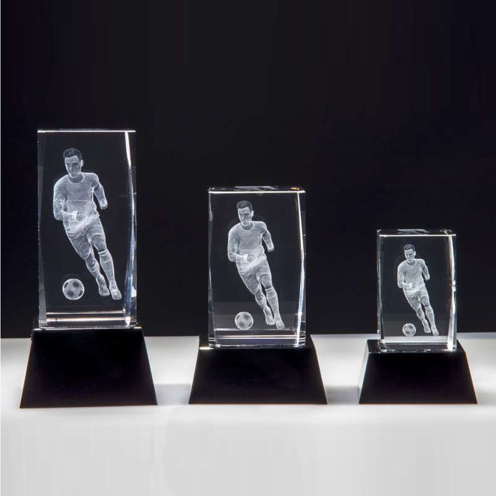 Fussball-Pokal 3D-Glas auf Sockel
