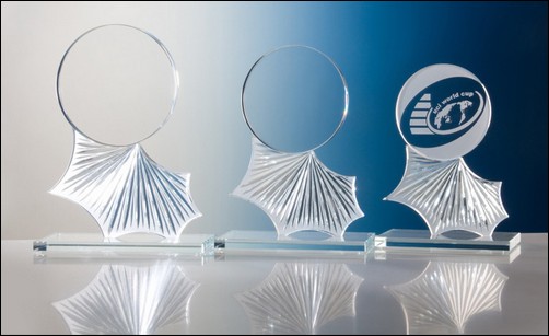 Ein phantastisches Design : ein kunstvoll handgearbeiteter Award in Form einer geschliffenen Späre, auf der eine Ronde aus klarem Kristallglas thront - edel und geheimnisvoll ! (Preis ohne Geschenkbox)