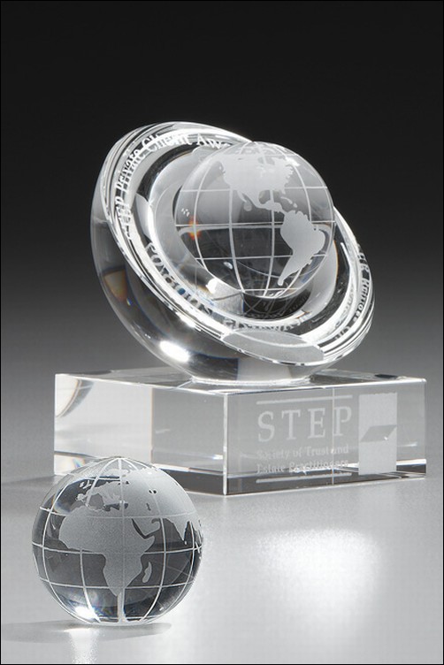 Äußerst raffiniert: Ein Globus aus Kristallglas mit 40 mm Durchmesser liegt lose in einer Halbkugel aus Kristallglas!